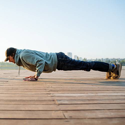 Holding a plank strengthens core muscles, essential for maintaining proper posture and reducing back pain.